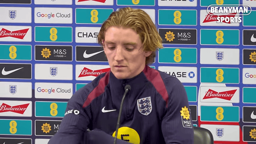 虎扑10月08日讯 英格兰队召开新闻发布会,球员安东尼-戈登出席。
